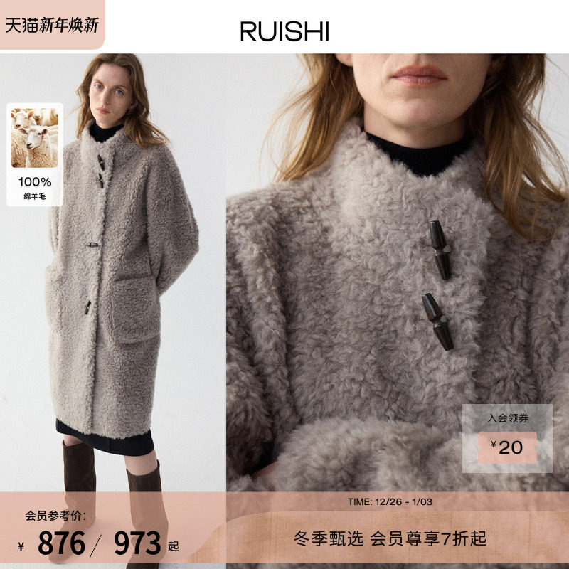 RUISHI芮时 “雪国印象”100绵羊毛颗粒绒大衣毛绒毛呢外套女冬
