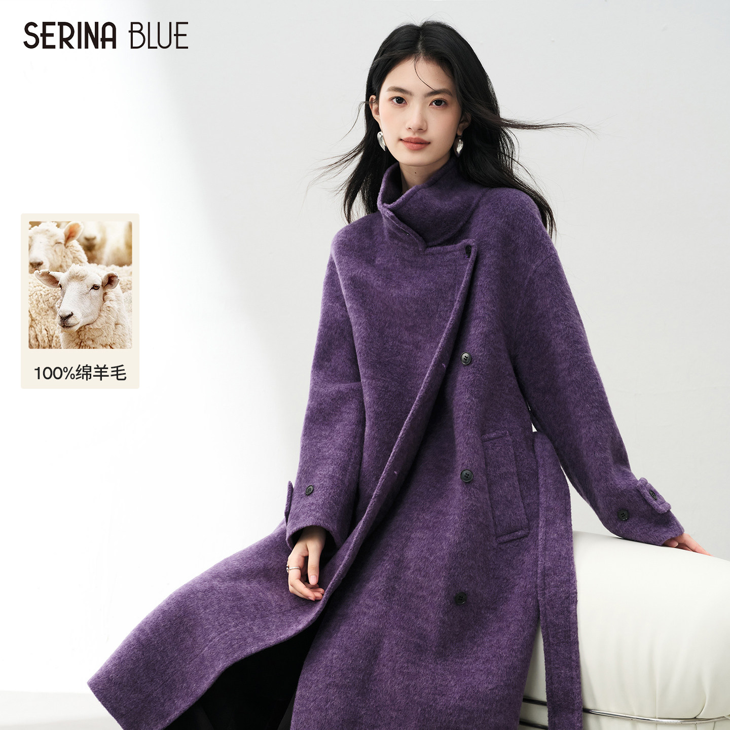 SeRina Blue2025年冬季新款紫色气质高端羊毛双面呢大衣女士外套