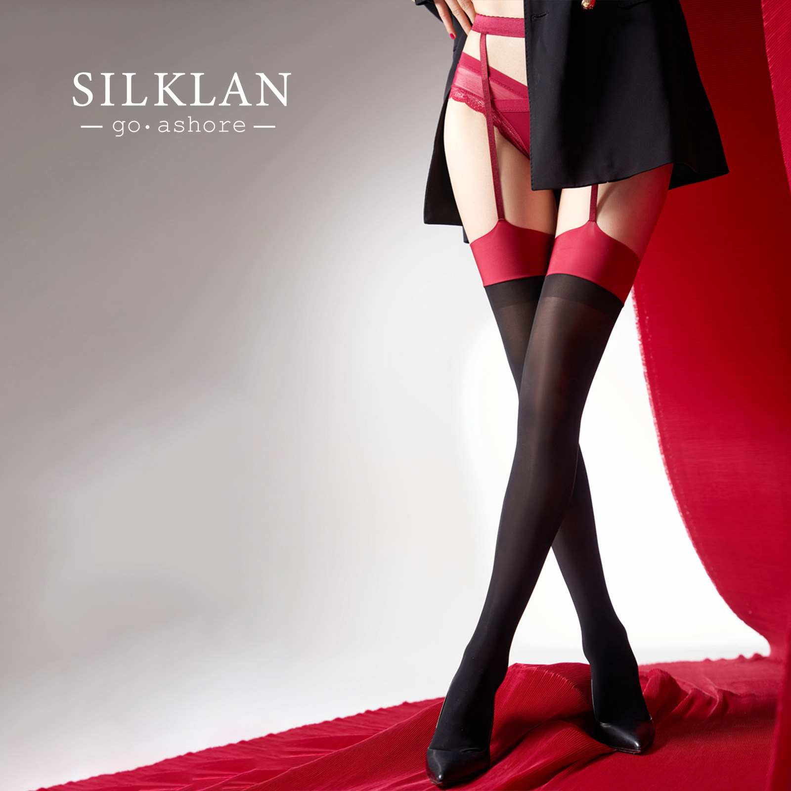 丝澜「绯」黑红撞色绫一体包臀裙吊带袜性感纯欲蕾丝超薄长筒丝袜