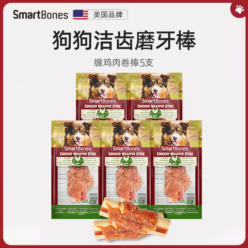 【天猫U先】SmartBones洁齿骨狗狗磨牙棒零食缠鸡肉卷棒5支