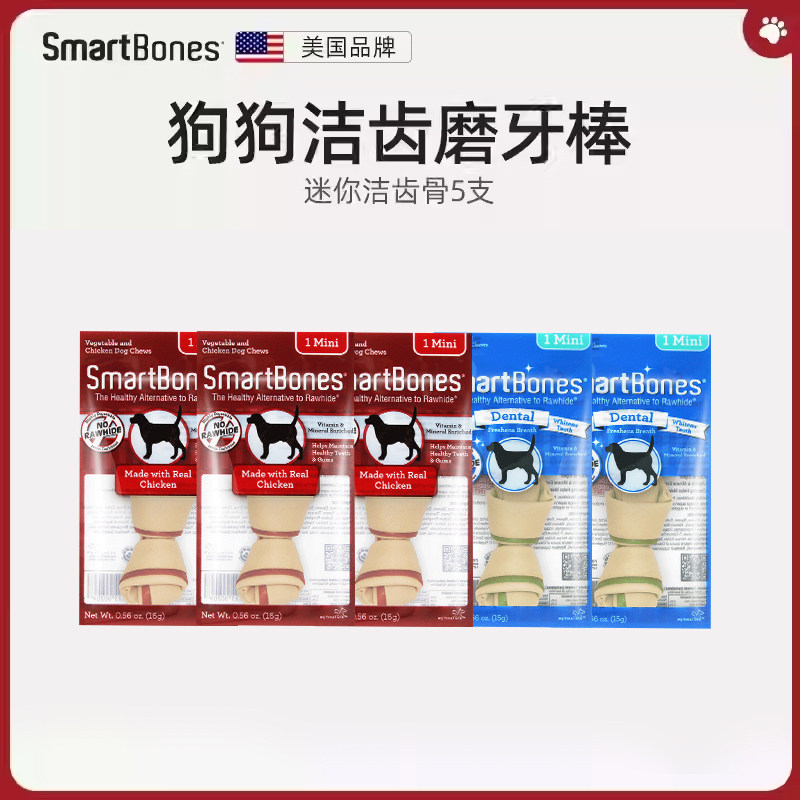 SmartBones洁齿骨狗狗磨牙棒零食宠物泰迪小型犬咬胶50支幼犬小狗