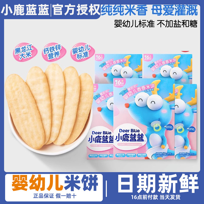 小鹿蓝蓝婴幼儿香米饼干宝贝磨牙棒零食食品儿童原味饼干米饼 41g