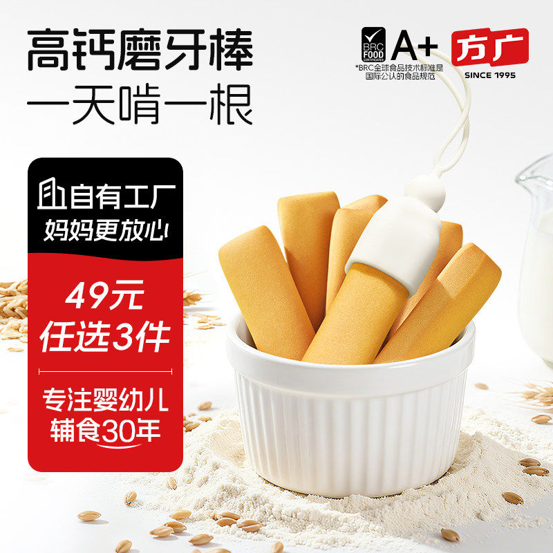方广婴幼儿磨牙棒零食带防掉绳磨牙饼干牛乳味宝宝辅食6个月以上