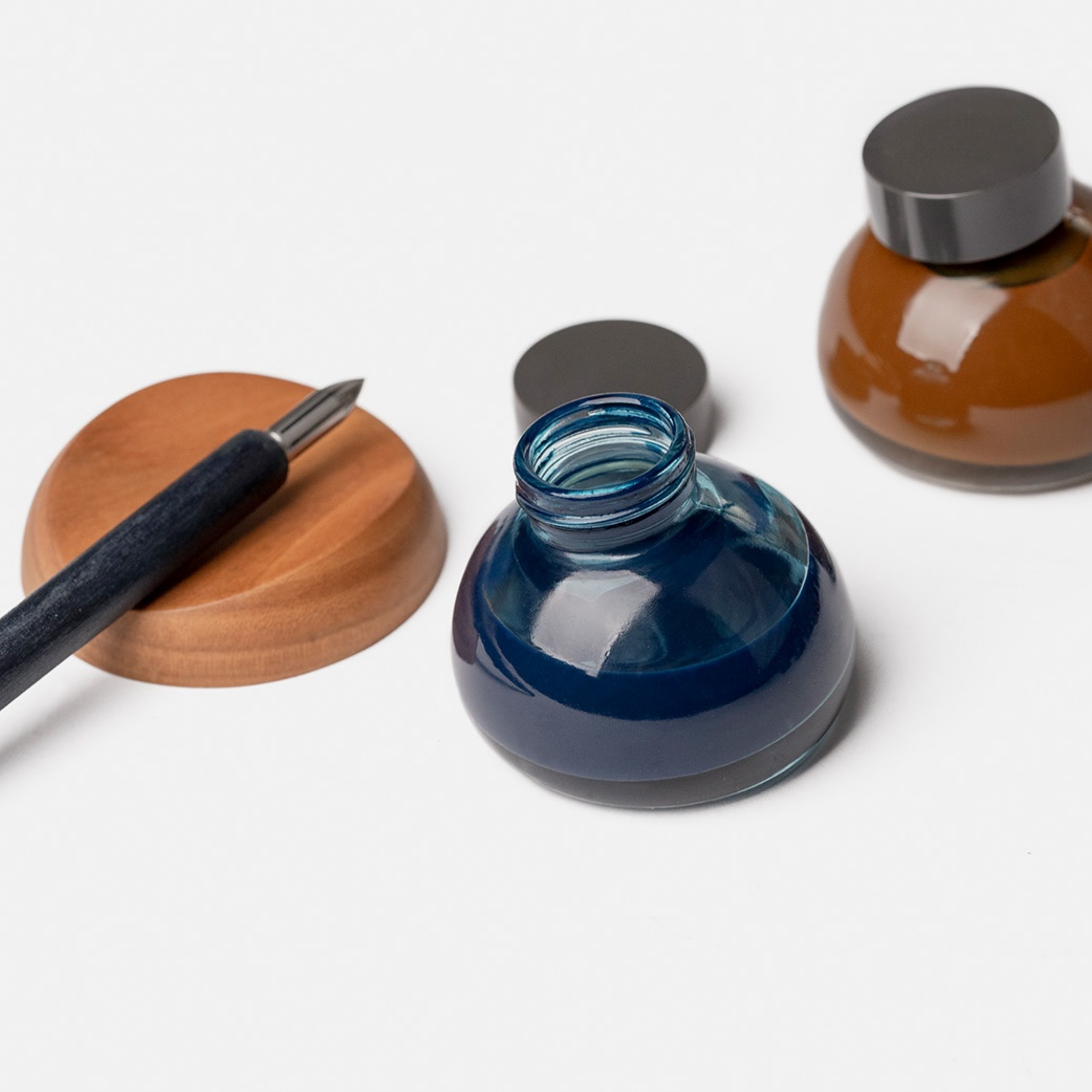 预d日本kakimori新设计感歪脖瓶彩色蘸水笔钢笔非碳素35ml墨水