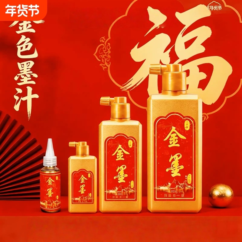 金色墨汁对联书法专用金墨汁大瓶金粉墨水毛笔写春联自写福字手写斗方套装2025新款黄色颜料过年墨计黄墨彩墨