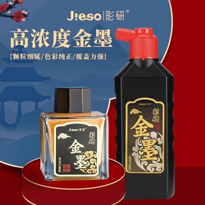 彩研超浓墨汁抄经毛笔对联福字斗方春联书法专用毛笔墨水金墨金色春墨金墨液国画金粉彩色练字对联大容量墨水