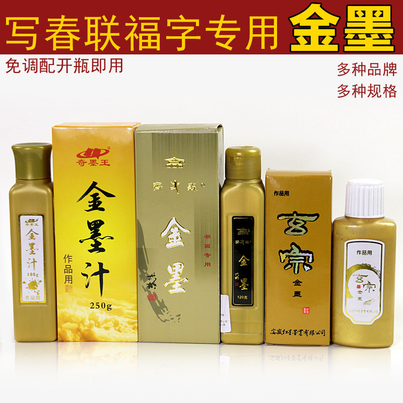 对联金墨汁书法专用毛笔抄写金墨汁写对联银墨白墨汁朱墨朱砂墨汁红墨汁朱液白墨水斗方万年红金墨汁写春联