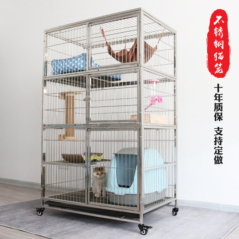 不锈钢猫笼双层三层猫笼子组合家用室内猫别墅大号猫笼子猫咪围栏