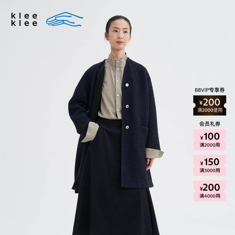 素然 klee klee 25冬女士经典粗花呢蓝布舒适阔系大衣