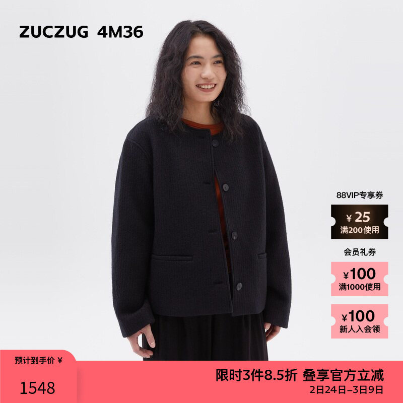 【新品】素然ZUCZUG 4M36 24冬季女士羊毛竖条针织呢圆领短大衣