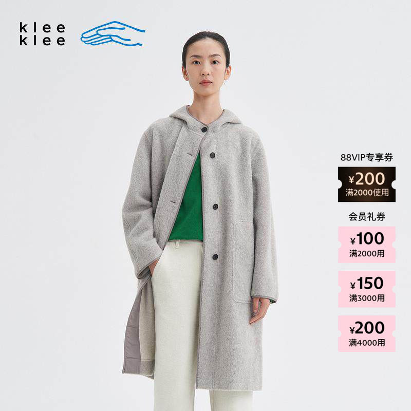 素然 klee klee 25冬女士原色连帽毛呢休闲简约大衣