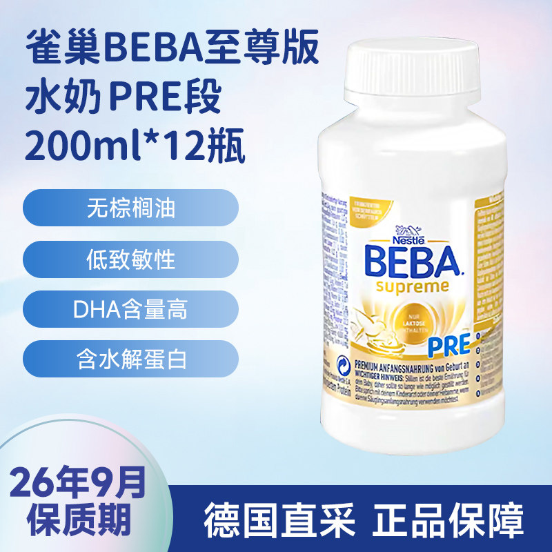 德国雀巢BEBA至尊版SUPERME婴幼儿液态奶粉PRE段水奶200ml*12瓶