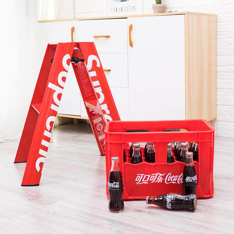 Superme铝合金人字家用红点奖梯子安全多功能折叠梯红色潮牌梯