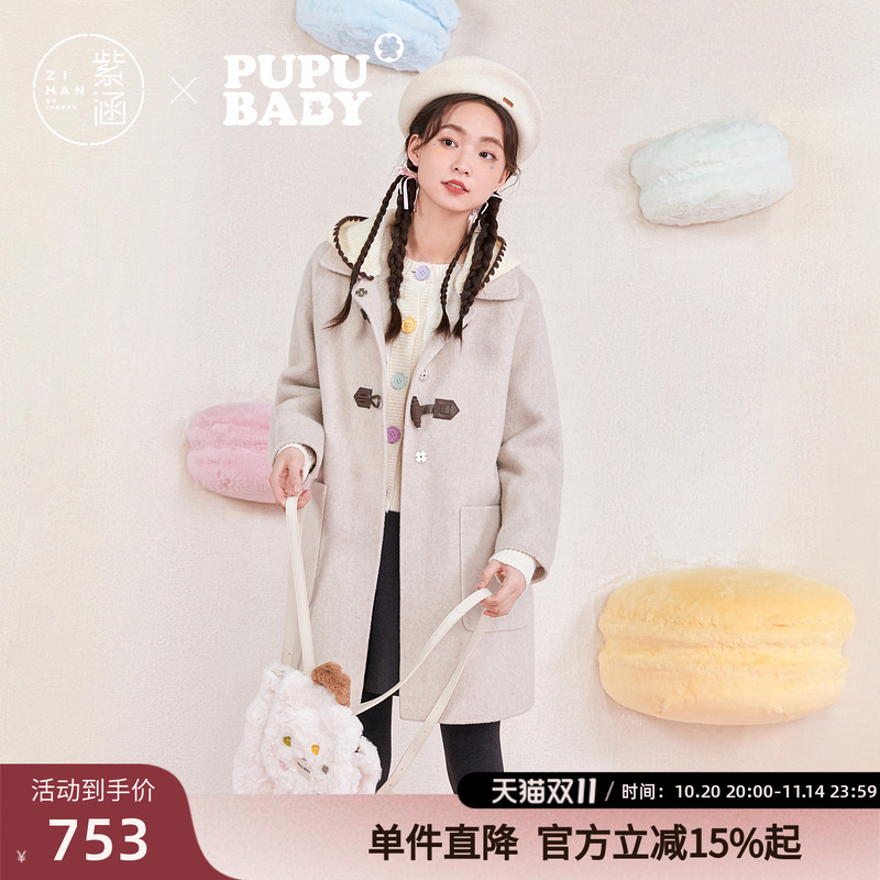 LAGOGO北海道情书针织连帽双面呢大衣女2025冬新款气质中长款外套