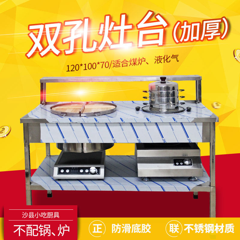 沙县小吃设备灶台电磁灶液化气灶台加厚单孔灶台电气两用双孔灶台
