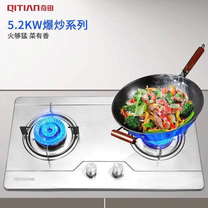 奇田JZT-A20燃气灶天然气5.2KW猛火灶金属边可调底壳台嵌两用双灶