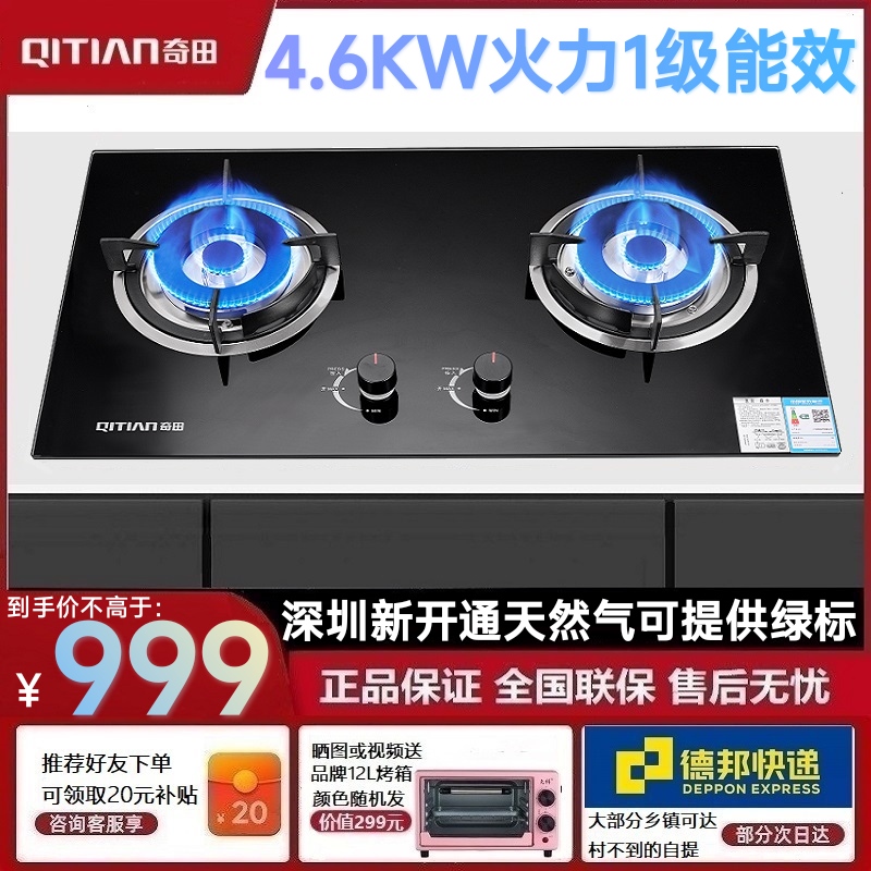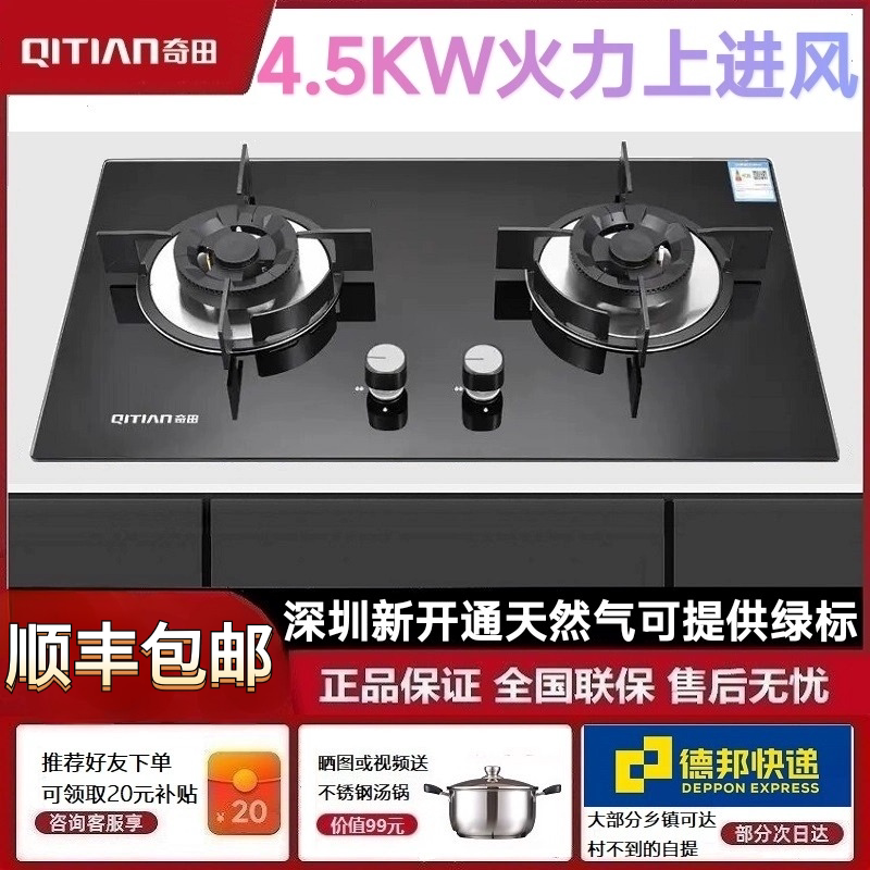 奇田JZT-D8定时灶燃气热水器天然气台嵌两用双灶5.2KW猛火煤气炉