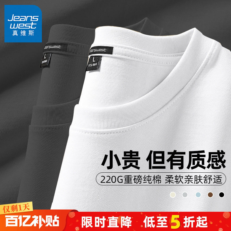 GV真维斯重磅短袖T恤男夏季纯棉纯色正肩白t男士男款白色打底衫A