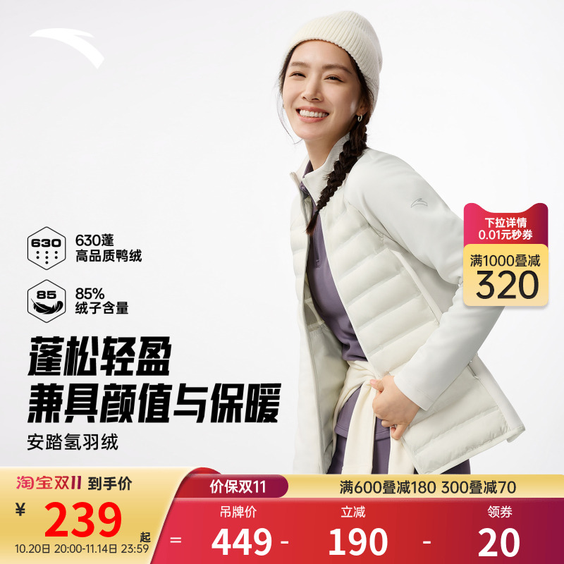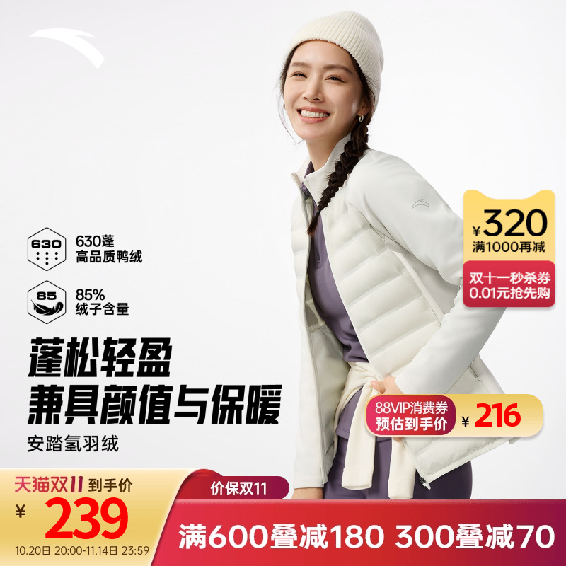 安踏氢羽绒丨轻薄羽绒服女士秋冬立领修身保暖运动上衣冲锋衣内胆