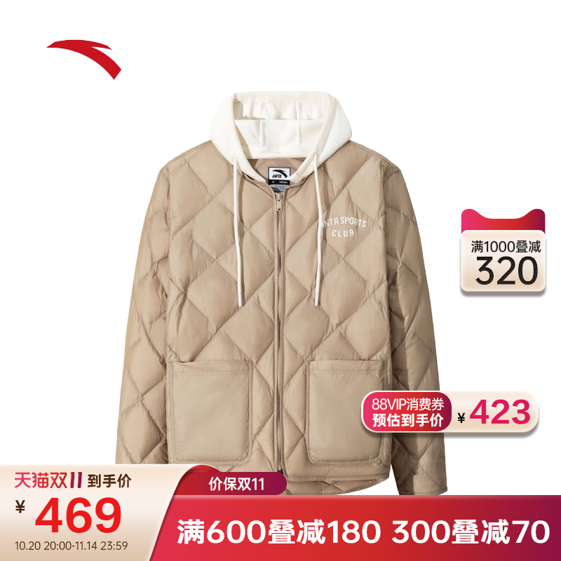 安踏防泼水轻薄排骨羽绒服女士冬季新款连帽内胆衣外套162547901