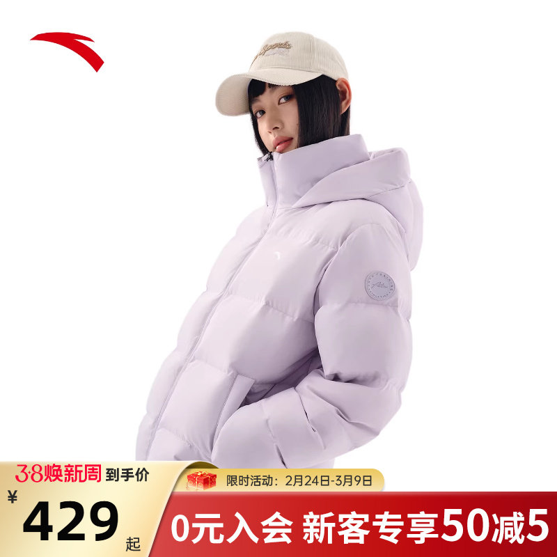 安踏防泼水羽绒服女士冬季新款宽松保暖连帽面包服外套162547911