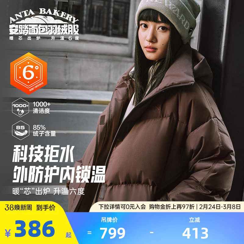 安踏面包羽绒丨防泼水高蓬松羽绒服女士2025冬季新款鸭绒保暖外套