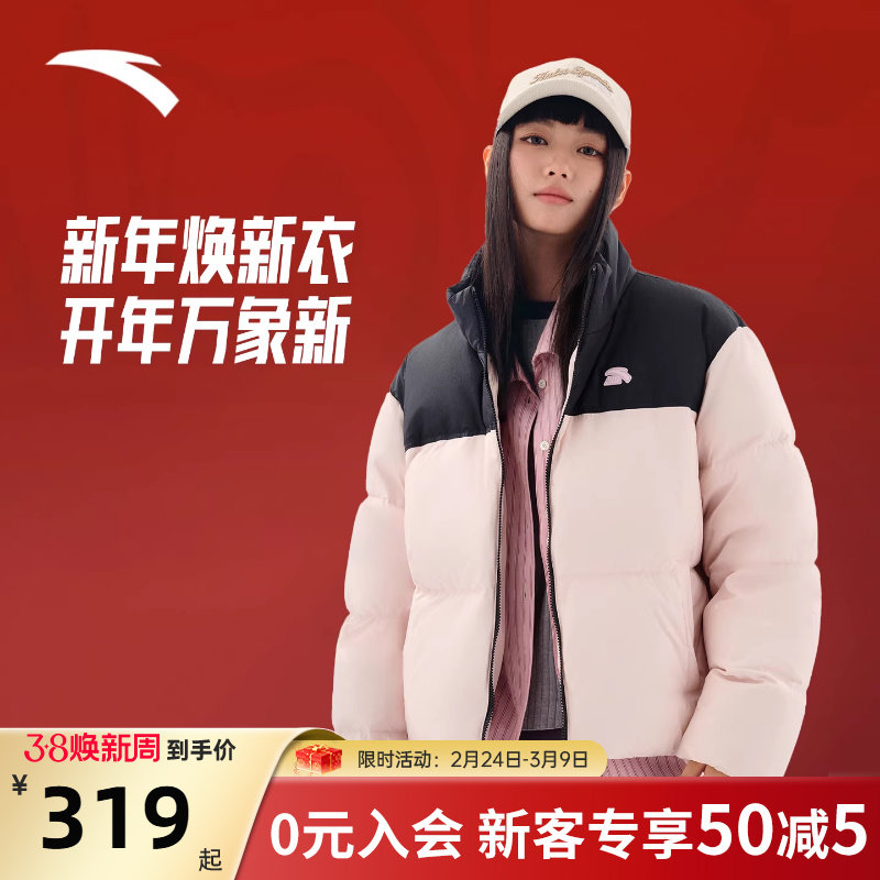 安踏面包羽绒丨立领运动羽绒服女士冬季新款加厚保暖棉服鸭绒外套