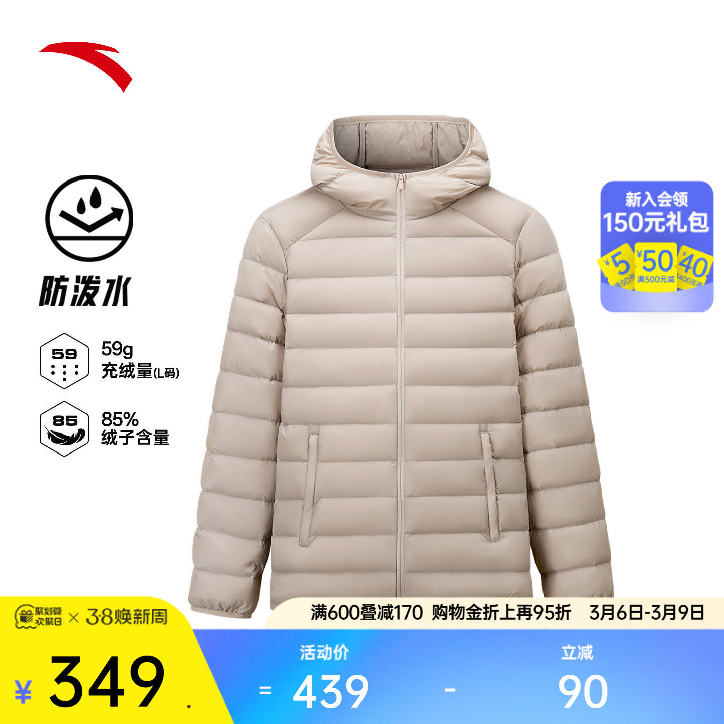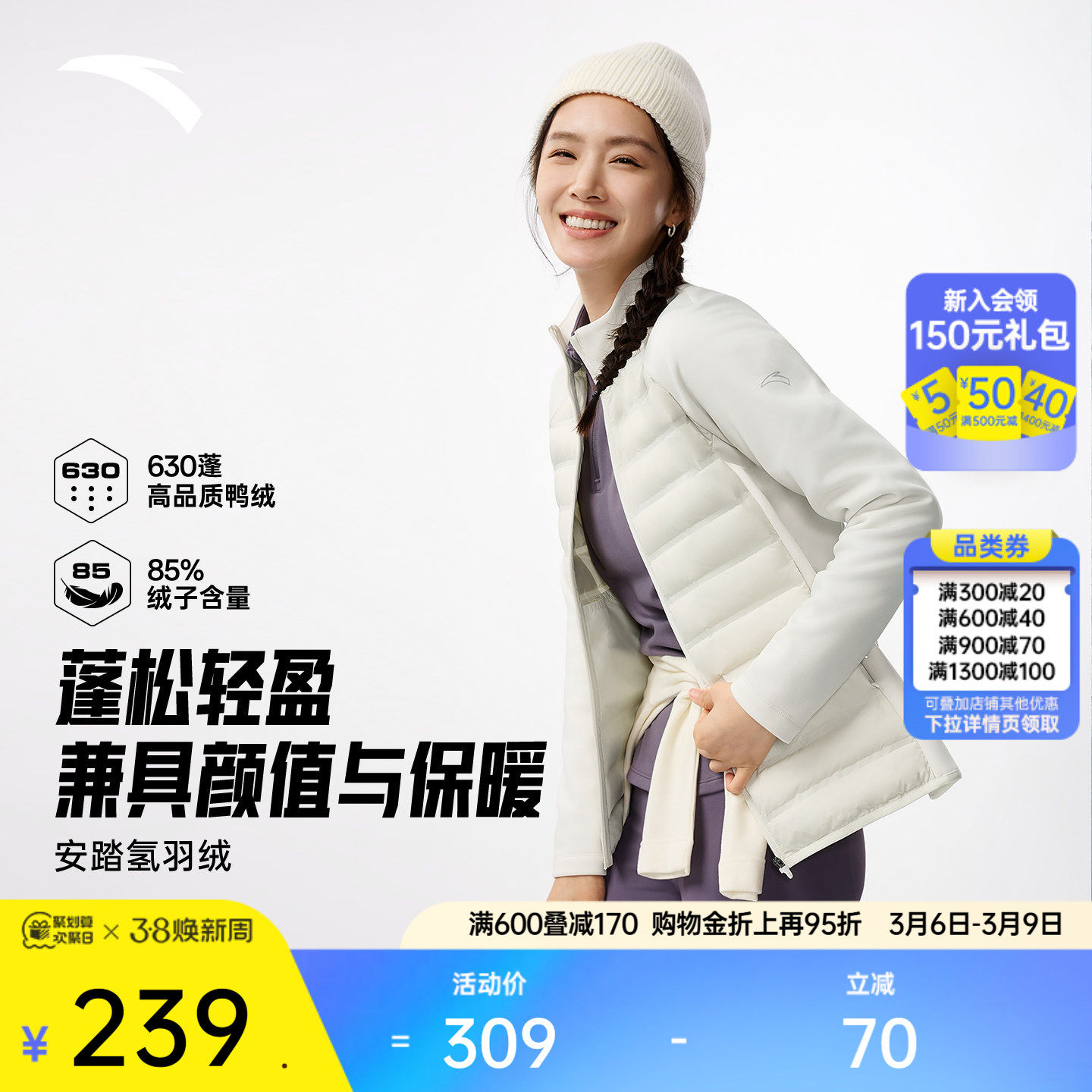 安踏女士羽绒服2026年新款春季保暖运动防泼水162547911
