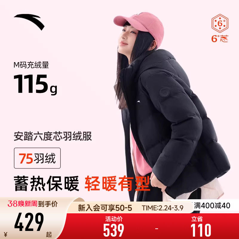 安踏六度芯羽绒服丨女士短款冬季户外防风保暖锁温运动鹅绒羽绒服