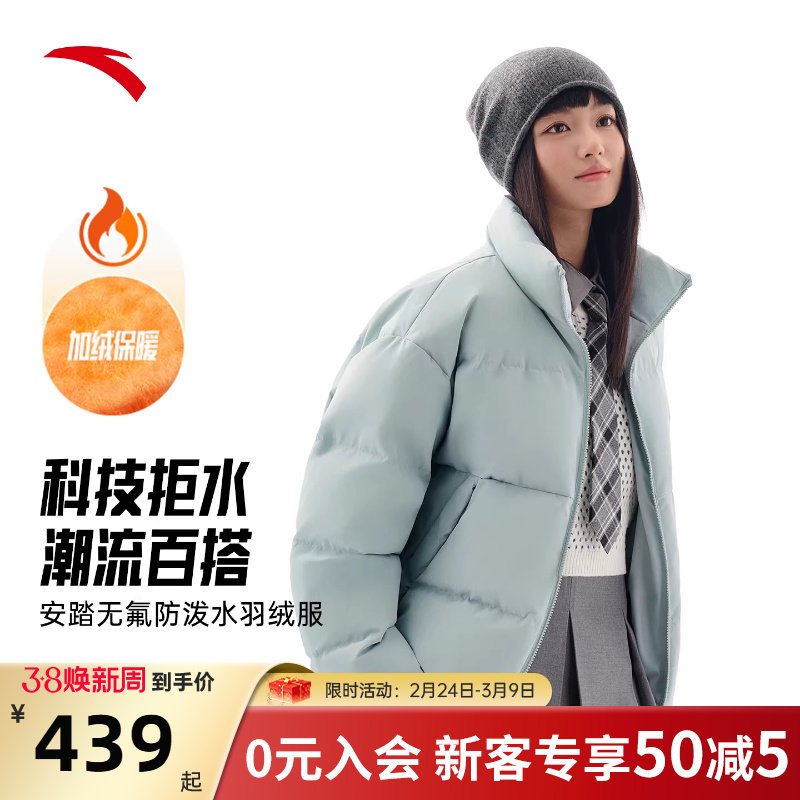 安踏女士运动复古羽绒服防泼水无氟冬季保暖外套百搭162548917N
