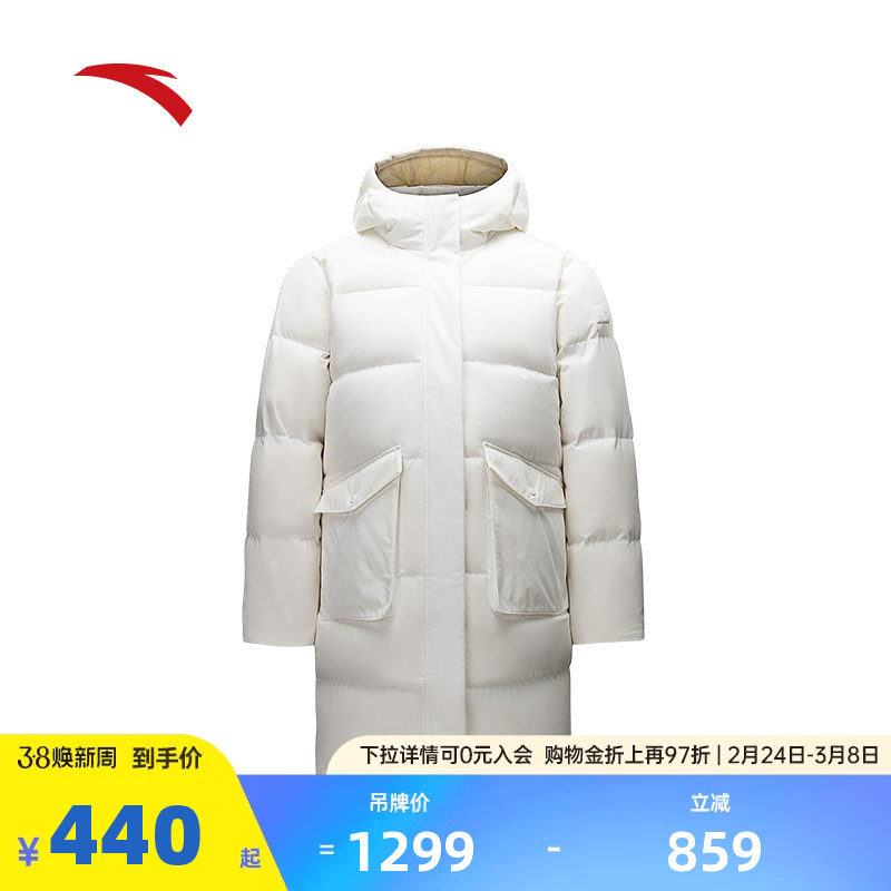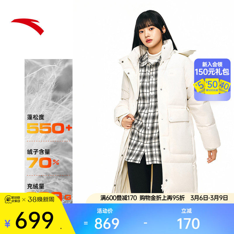 安踏速暖羽绒服丨长款过膝羽绒服女士鸭绒保暖棉服外套162518903