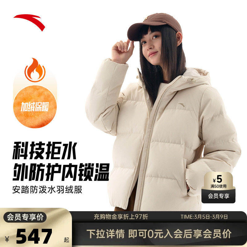 安踏2025冬季新款女士防水羽绒服外套保暖羽绒服162547911