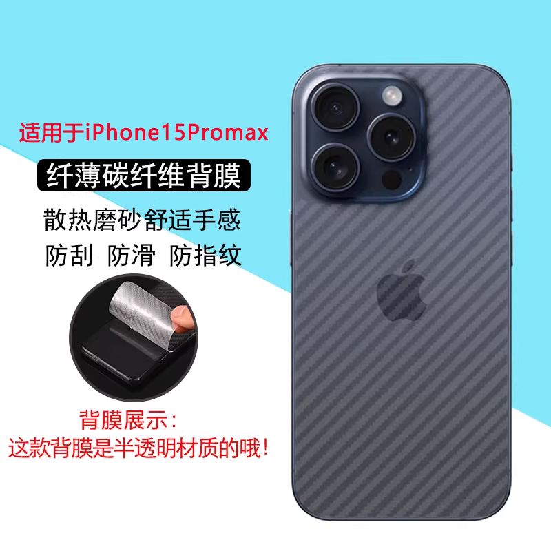 适用苹果碳纤维黑色后膜15Promax背面保护贴纸手机软膜13/14plus/15/12pro/12mini/7/8/x/xr/xsm/7p/8p/se23