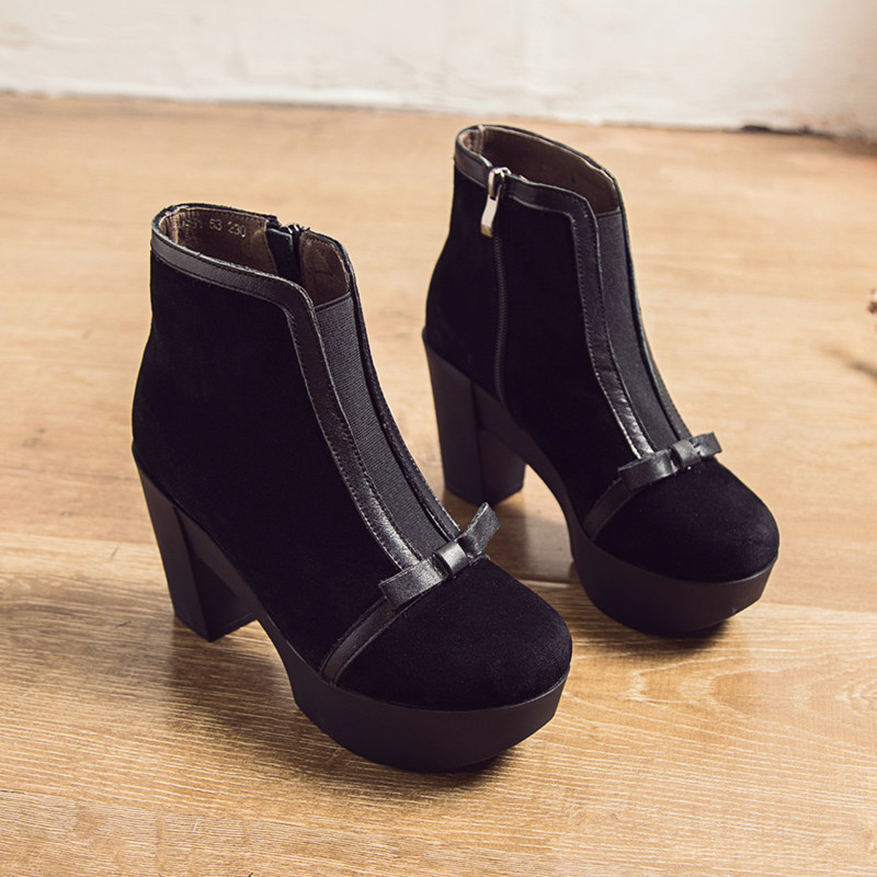 星期六今年流行的靴子磨砂短靴翻毛皮粗跟瘦瘦靴秋冬季女鞋高跟鞋