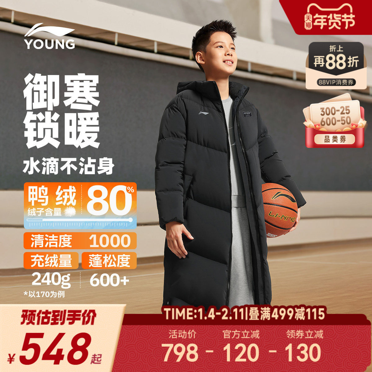 - 羽绒服男lining