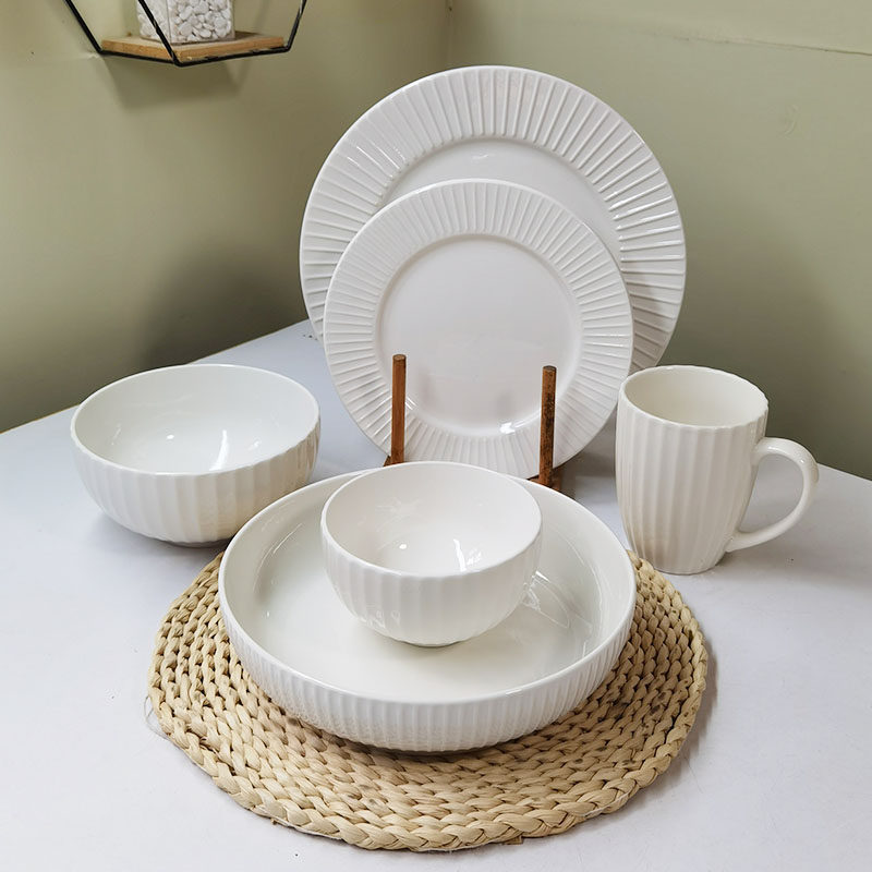 釉下彩白色浮雕陶瓷碗盘套装家用碗盘子菜盘牛排盘面碗简约-微瑕