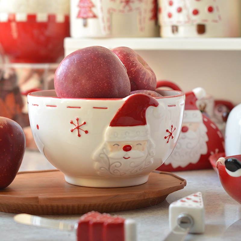 2025新款圣诞手绘陶瓷碗浮雕3D立体水果碗创意可爱面碗冰淇淋碗