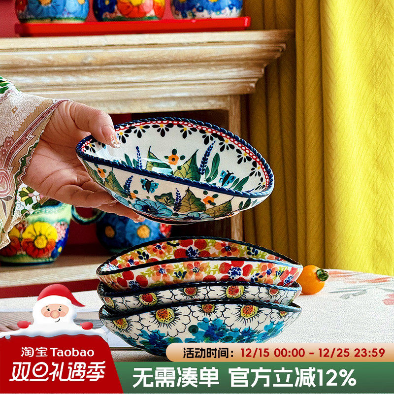 〖小众艺术〗高级感深盘出口北欧沙拉碗陶瓷小炒菜盘菜碗汤盘饭盘