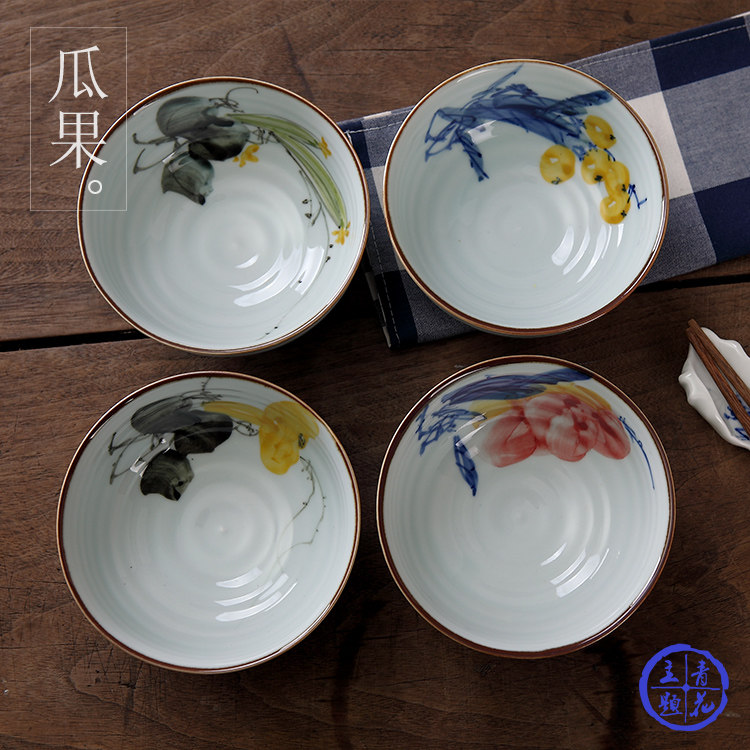 玉泉手绘陶瓷米饭碗家用创意面碗汤碗高颜值釉下彩餐具家用碗微瑕