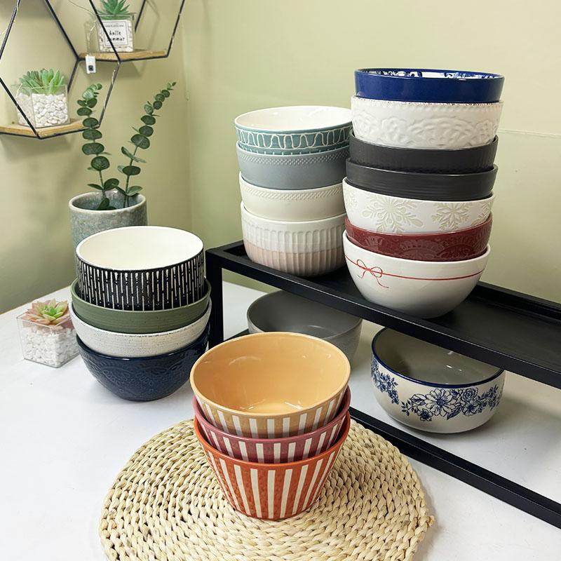 6.8元3个陶瓷米饭碗餐厅家用饭碗早餐碗汤碗浮雕沙拉碗甜品碗简约