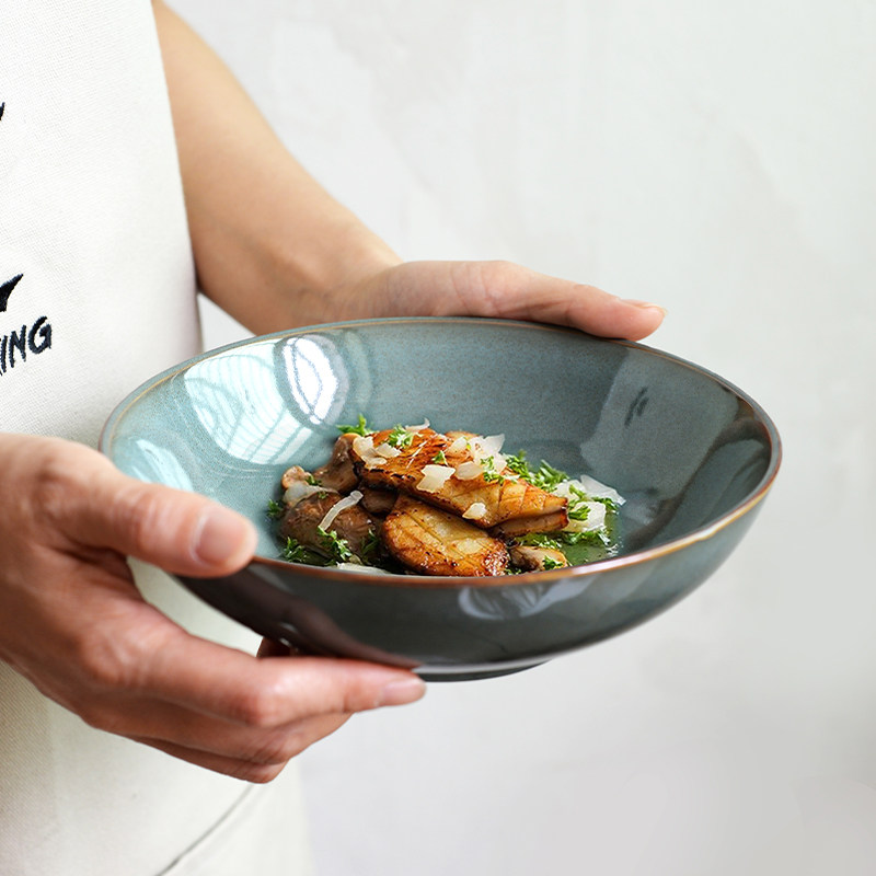 moodboard 灰蓝色亮面碗 渐变流釉水蓝艺术陶瓷汤碗酸奶米饭碗7寸