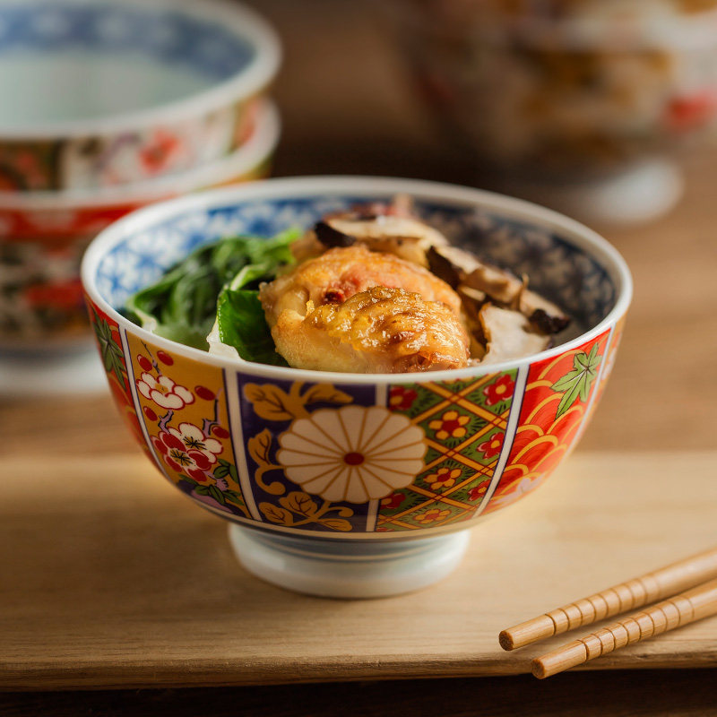 新中式国风锦彩青花米饭碗家用陶瓷吃饭碗套装高颜值单个饭碗餐具