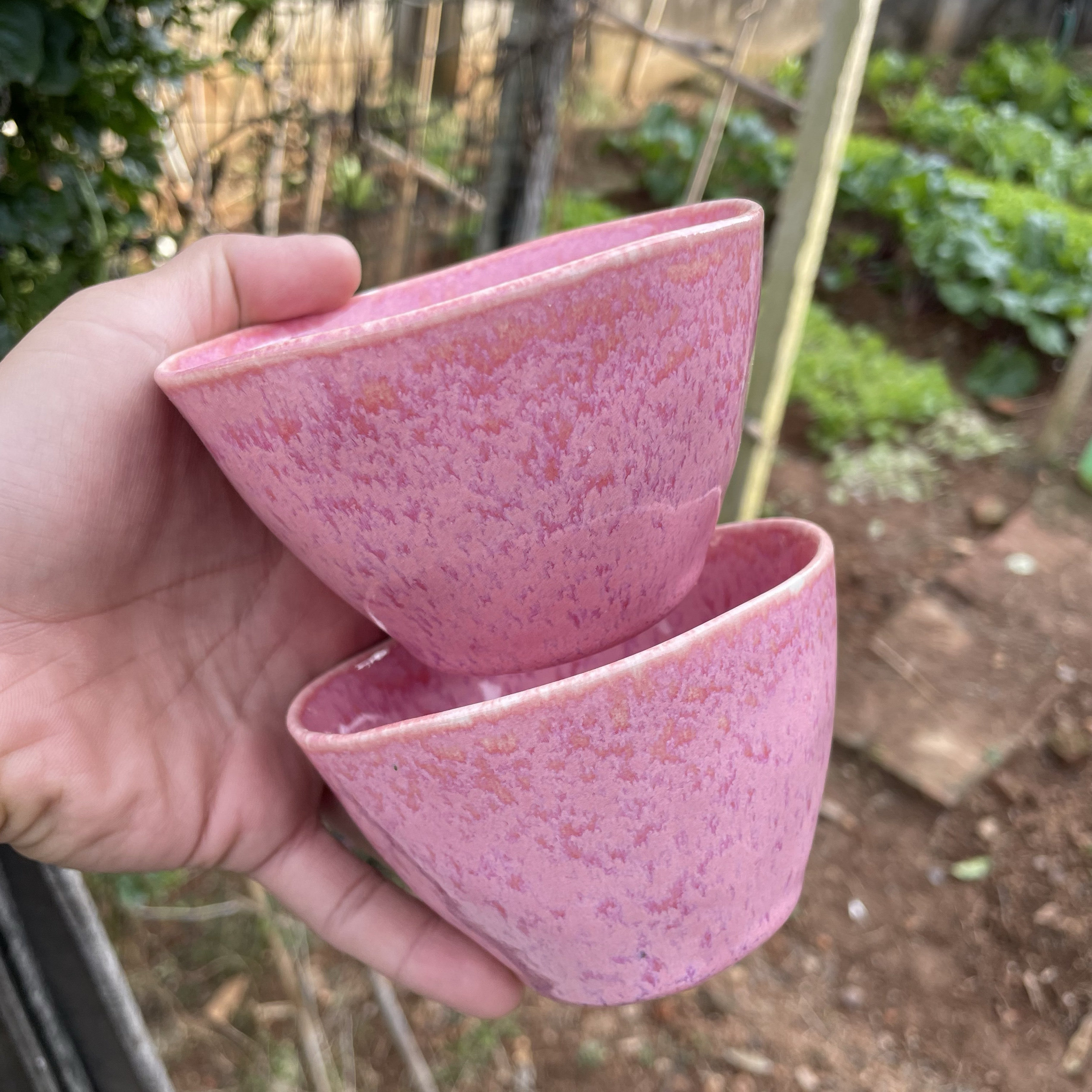 两只超美粉红窑变釉下彩陶瓷米饭碗艺术不规则吃饭碗家用调理小碗