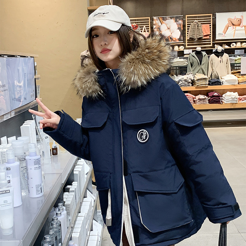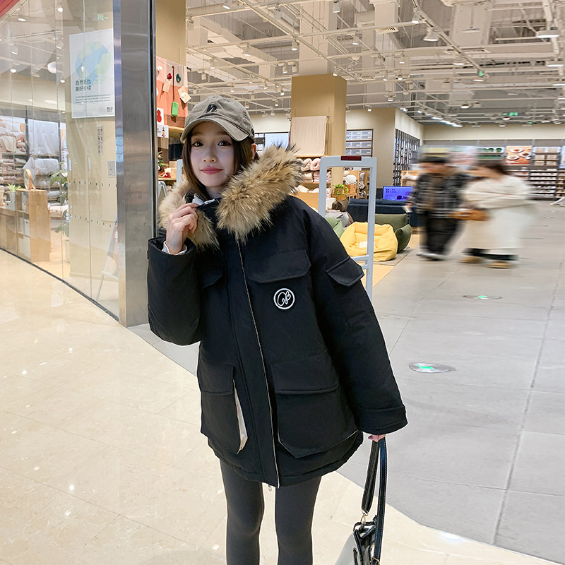 冬季新款中长款韩版宽松大毛领棉衣棉服女学生加厚工装开衫外套女