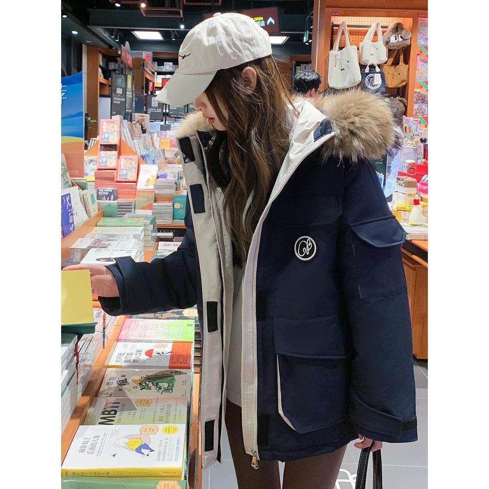鸭鸭2025冬季新款工装羽绒棉服女中长款大毛领韩版加厚学生棉袄潮