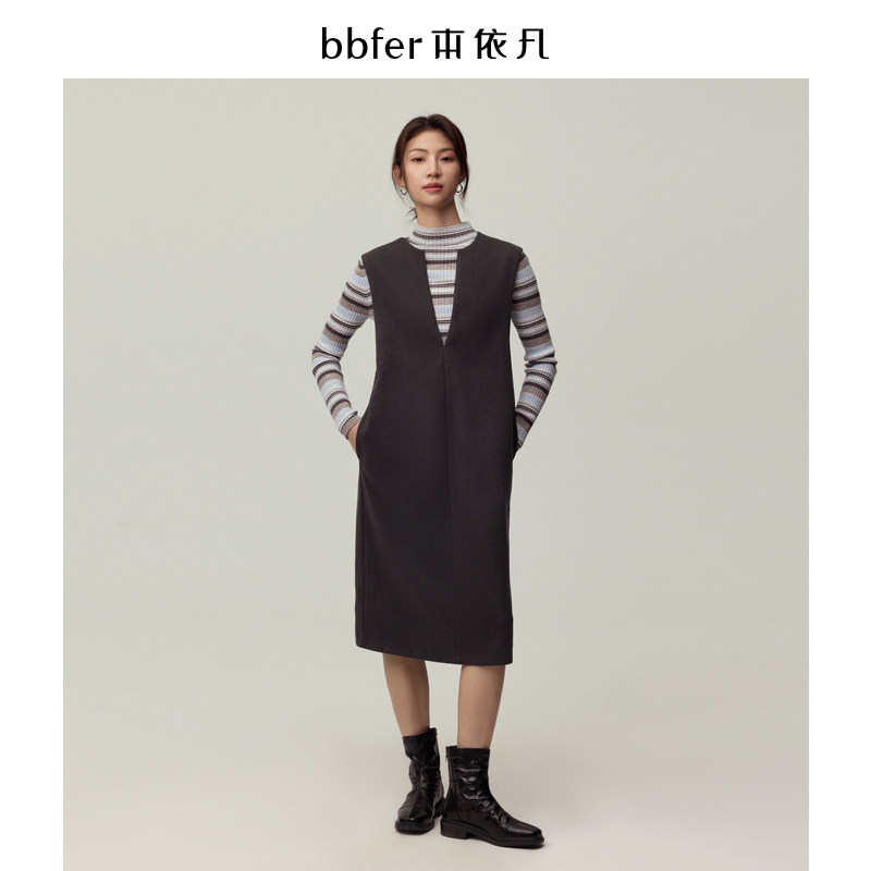 bbfer本依凡冬季黑色背带裙女直筒宽松无袖通勤连衣裙SSSLQ0440