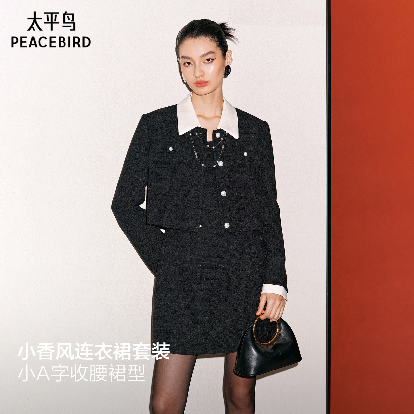 太平鸟赫本小香仪式感小香风连衣裙女新年战袍早春新款黑色背带裙