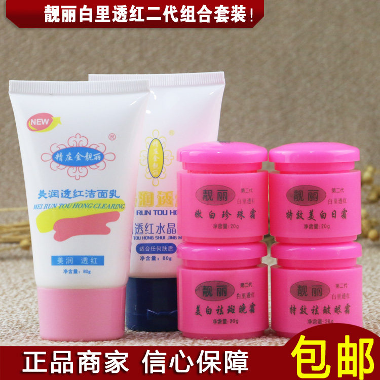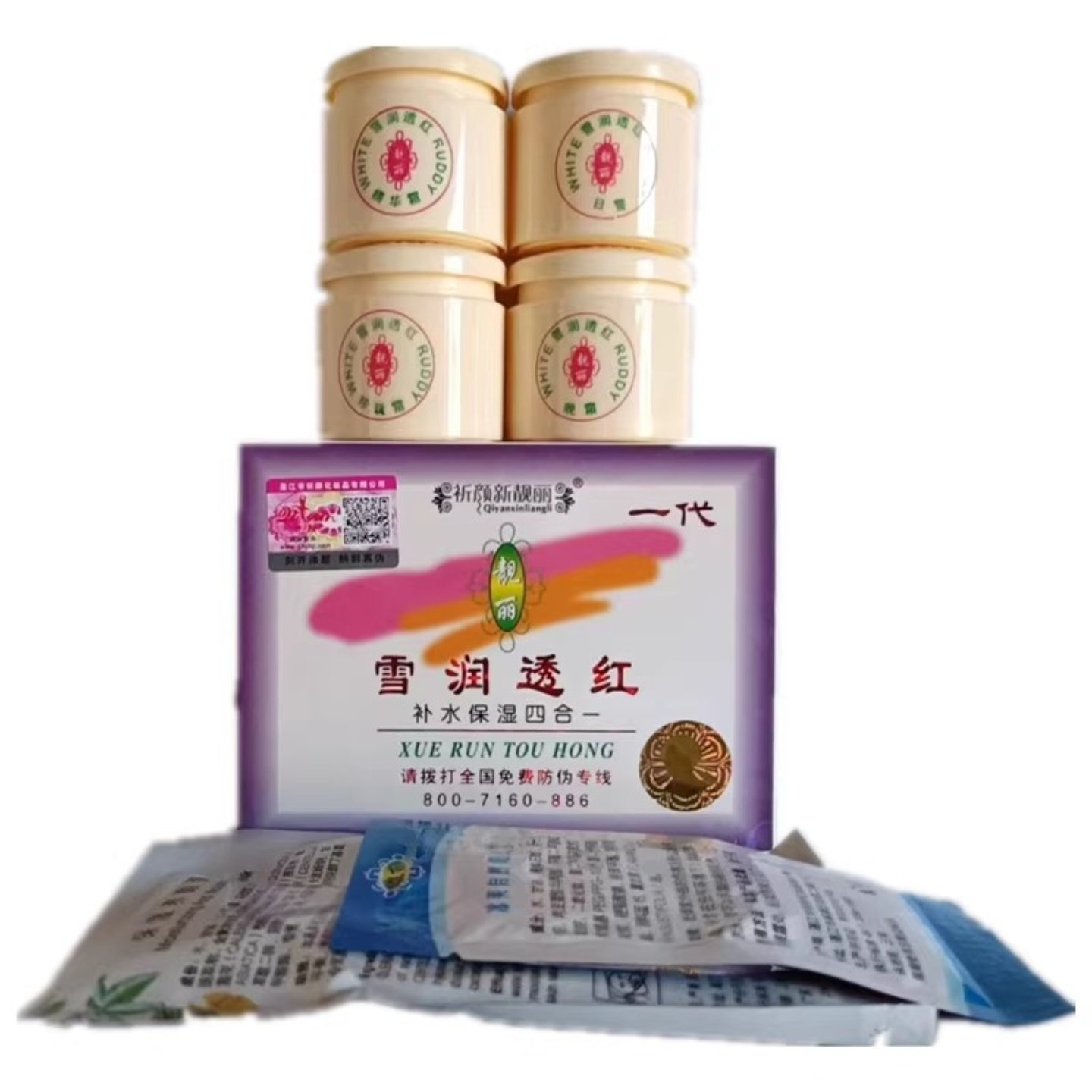 靓丽白里透红四合一套装正品保湿日霜早晚霜珍珠霜雪润透红化妆品