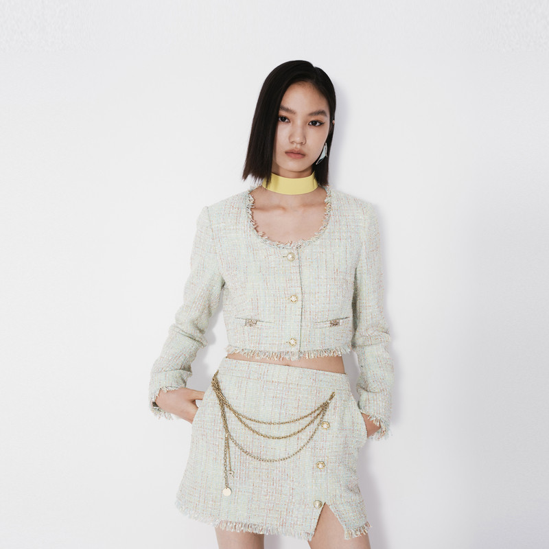 精致靓丽~秋冬新款女装定制毛呢线钉亮片a字裙法式复古甜美背心裙