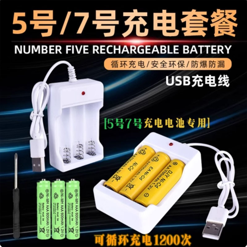 充电电池5号7号充电器1.2v通用USB充电套装玩具空调遥控风扇电池
